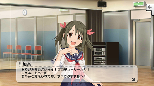 基本的にオーディションかスカウトでアイドルになるこの業界。加奈ちゃんさんは後者、スカウト組です。詳しくはデレステのコミュ1参照ですが、簡単にまとめると、道に迷ったときにたまたま出逢ったプロデューサーに道を教えてもらい、後日お礼の挨拶をしに行ったときにスカウトされました。