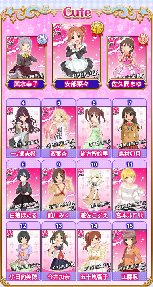 第7回総選挙、中間発表出ました! 今井加奈はCute13位です!